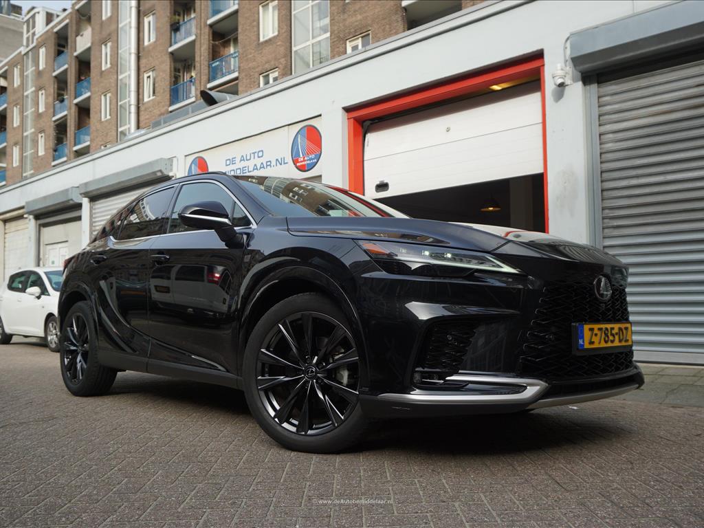 Lexus RX 450h+ F Sport Design | Premium Graphite Black | Panoramadak | Adaptieve cruise control + lane departure + rijstrookwissel hulp | Vollederen interieur | Stoel- en stuurverwarming + stoelventilatie | Premium audio/ Apple Carplay/ Android Auto | Alarm met volgsysteem | Rondomzicht 360 camera | Sfeerverlichting | Eerste eigenaar en dealer onderhouden | Fabrieksgarantie 02/2027 | Garantie hybride batterij en hybride systeem 2/2034 | achterasbesturing, achterbank in delen neerklapbaar, airco separaat achter, alarmsysteem, Anti Blokkeer Systeem, Apple Carplay/Android Auto, armsteun achter, audio installatie premium, autonome parkeerfunctie, bandenspanningscontrolesysteem, bestuurdersairbag, Bluetooth, bots herkenning en activatie, bots waarschuwing systeem, buitenspiegels verwarmbaar, bumpers in carrosseriekleur, camerabeeld in binnenspiegel, centrale airbag voor, connected services, cruise control adaptief met Stop&Go, DAB, dakrails, dodehoek detectie, draadloze telefoonlader, electronic climate control, elektrisch bedienbare achterklep met sensorsturing, elektrisch verstelb. bestuurdersstoel met geheugen, elektrisch verstelbare passagiersstoel, elektrisch verstelbare stoel(en) met geheugen, Elektronisch Stabiliteits Programma, elektronische remkrachtverdeling, geluid- en warmtewerend glas, getint glas en zonwering achter, grootlichtassistent, head-up display, hemelbekleding donker, hoofd airbag(s) achter, hoofd airbag(s) voor, keyless entry/start, knie airbag(s), LED achterlichten, LED dagrijverlichting, LED koplampen adaptief, lederen bekleding, lendesteun(en) verstelbaar, lichtmetalen velgen 21", mistlampen voor, multimedia scherm standaard, navigatiesysteem full map, oplaadmogelijkheid, parkeer assistent, parkeersensor voor en achter, passagiersairbag, regensensor, rijstrooksensor met correctie, schakelpaddles, sfeerverlichting, sportief interieur, spraakbediening, stoel ventilatie voor, stuur leder, stuur multifunctioneel, stuur verwarmd, verkeersbord detectie, vervolgbotsing preventie, volledig digitaal instrumentenpaneel, voorstoel(en) elektrisch verstelbaar, voorstoelen verwarmd, zij airbag(s) achter, zij airbag(s) voor, zonnescherm achterruit, elektrisch glazen panorama-dak, premium metaalkleur.